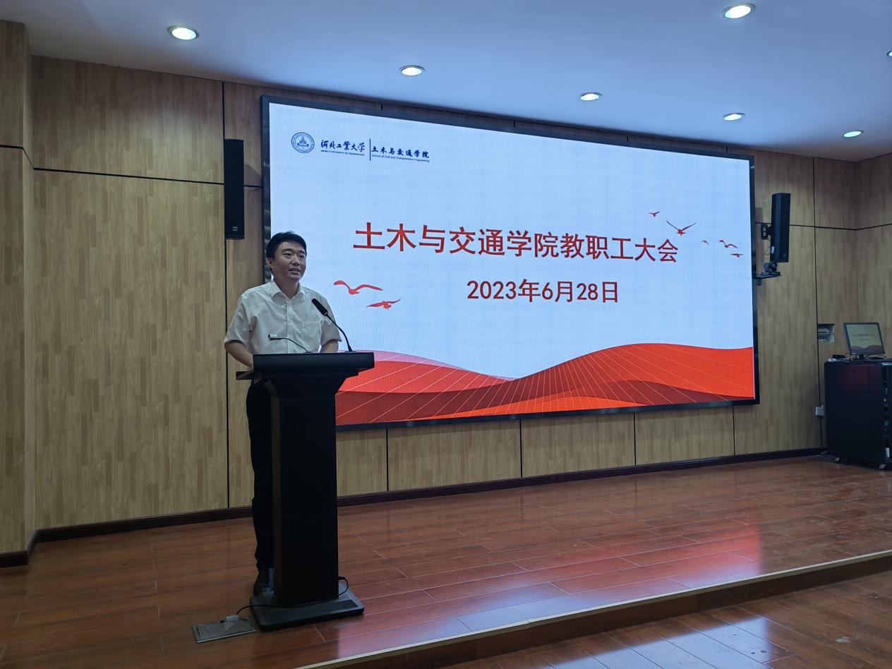 最后,党委书记崔洪军总结发言。他表示,2023年春季学期全院师生团结拼搏、锐意进取,学院各项工作均取得了不错的成绩,并对专业建设、博士点申报、实验室安全、老员工学科类科技竞赛、重点员工走访、校庆筹款、服务河北行动计划和2023年学院突出业绩指标等下一阶段重点工作提出了要求,希望全院教师继续加把劲儿,希望学院全体教师进一步统一思想,凝聚共识,敢于担当,善于作为,以高效率、高质量推动学院重点工作落地落实。