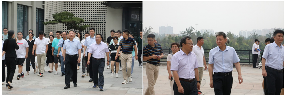 会前,公司师生及家长一行在交建集团领导的带领下,参观了七里河栈道—办公街区,了解了集团企业文化、发展历程。